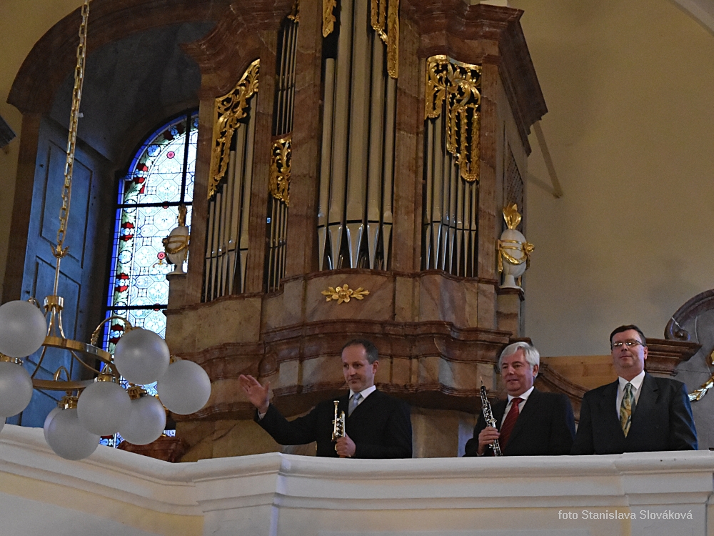 Koncert v kostele sv. Valentina. Pavel Hromádka - trubka, Tomáš Thon - varhany, Dušan Foltýn - hoboj. Foto Stanislava Slováková