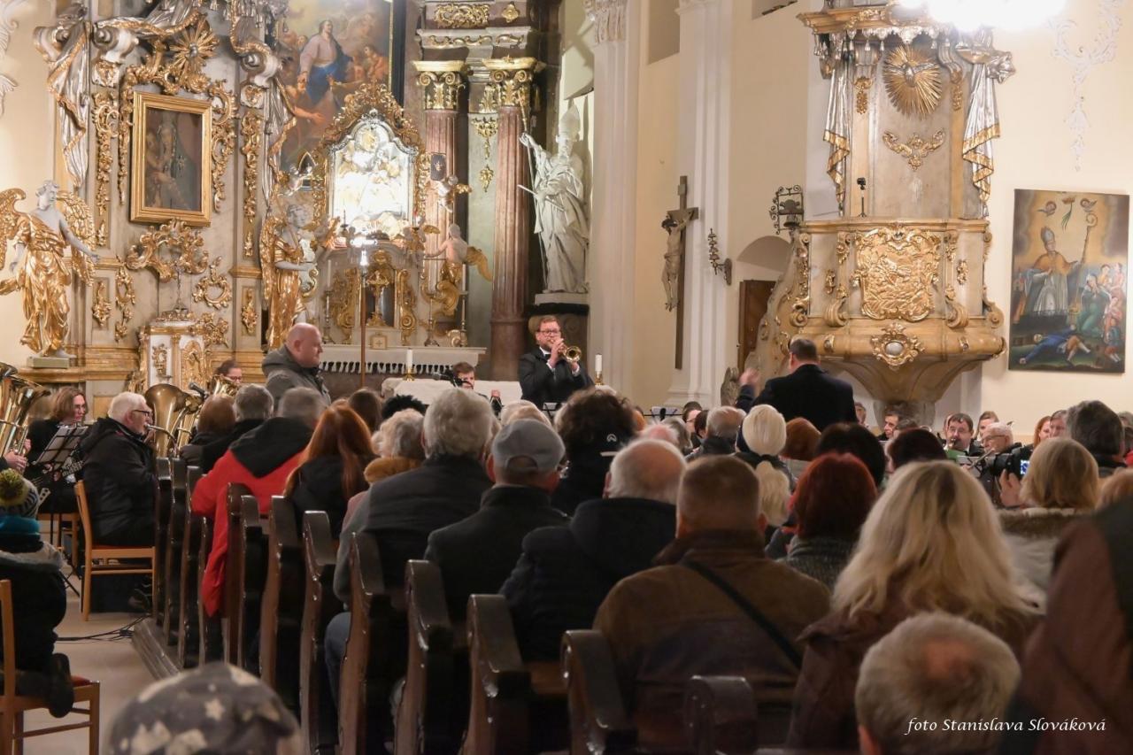 V kostele sv. Valentina vystoupil Lašský dechový orchestr, dirigoval Aleš Kuběna, zpívali Barbora Kalichová, Renáta Navrátilová, Ondřej Šimíček. Průvodní slovo Iva Bukovjanová. Foto Stanislava Slováková