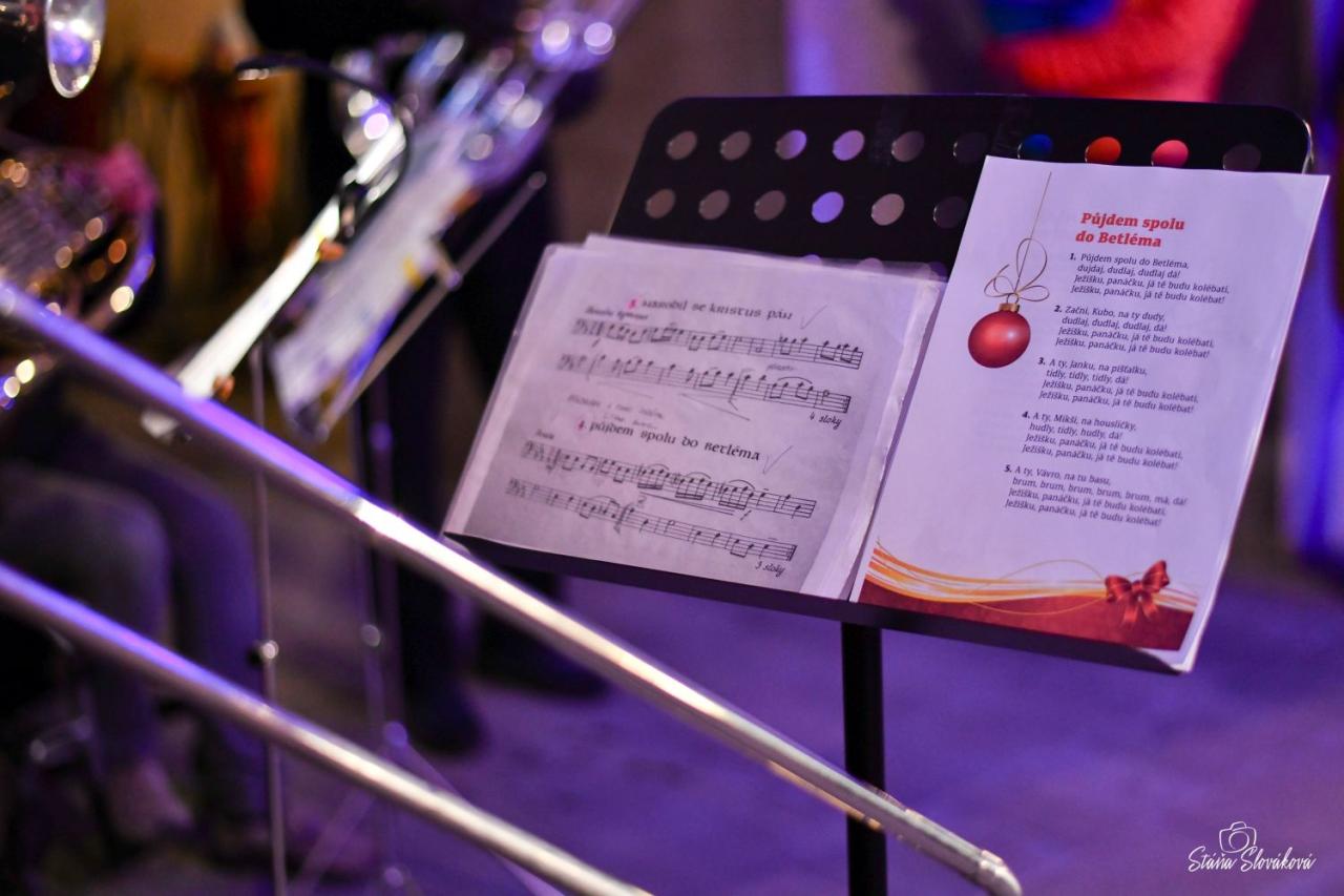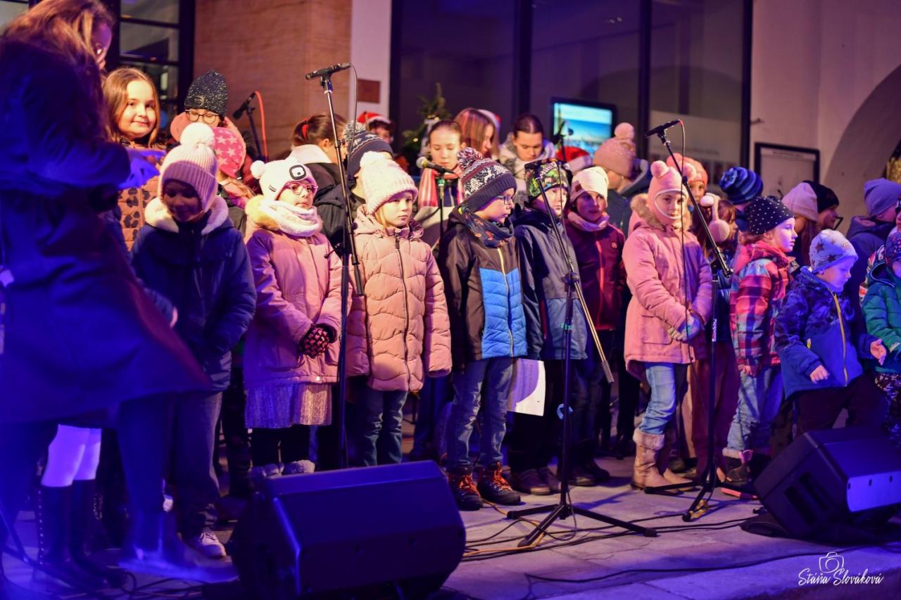 Před radnicí města Příbora se uskutečnila tradiční akce ČESKO ZPÍVÁ KOLEDY. Ke zpěvu zahrálo Příborské žesťové kvinteto a zpívaly také děti ze sboru ZUŠ Příbor. Foto Stanislava Slováková