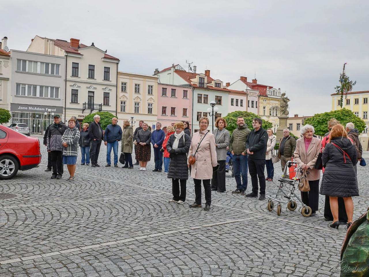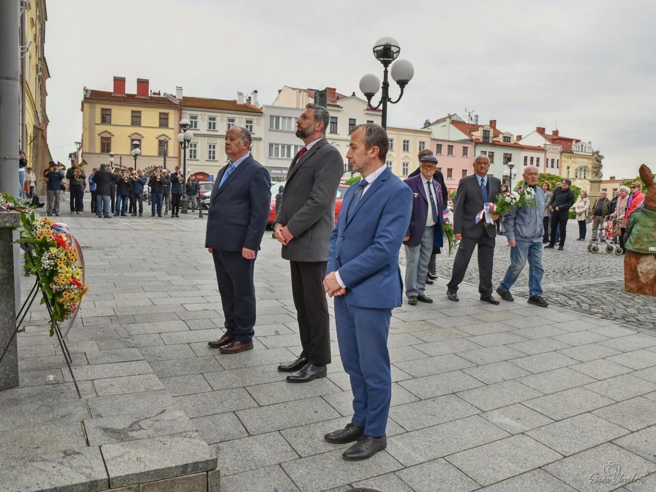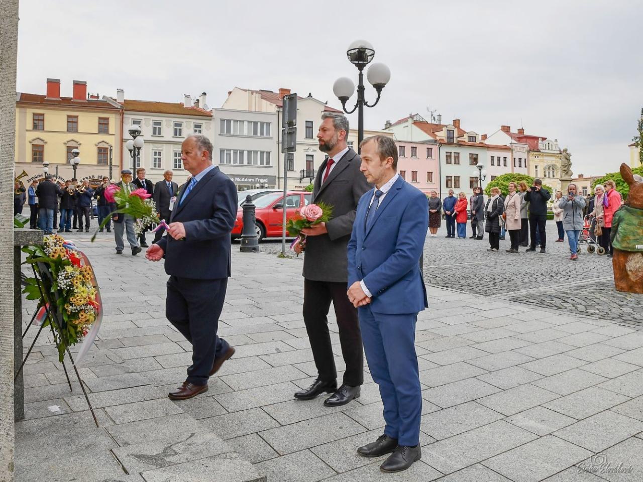 Vzpomínková akce s položením věnců u pamětní desky Vlastencům a osvoboditelům před radnicí na náměstí S. Freuda. Foto Stanislava Slováková