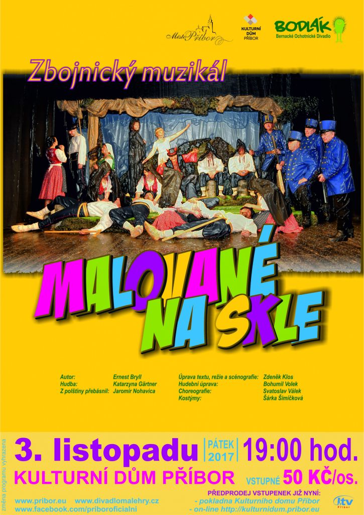 Město Příbor Vás srdečně zve na divadelní představení Malované na skle,v pátek 3. listopadu 2017, v 19 hodin do Kulturního domu Příbor. Vstupné 50 Kč.