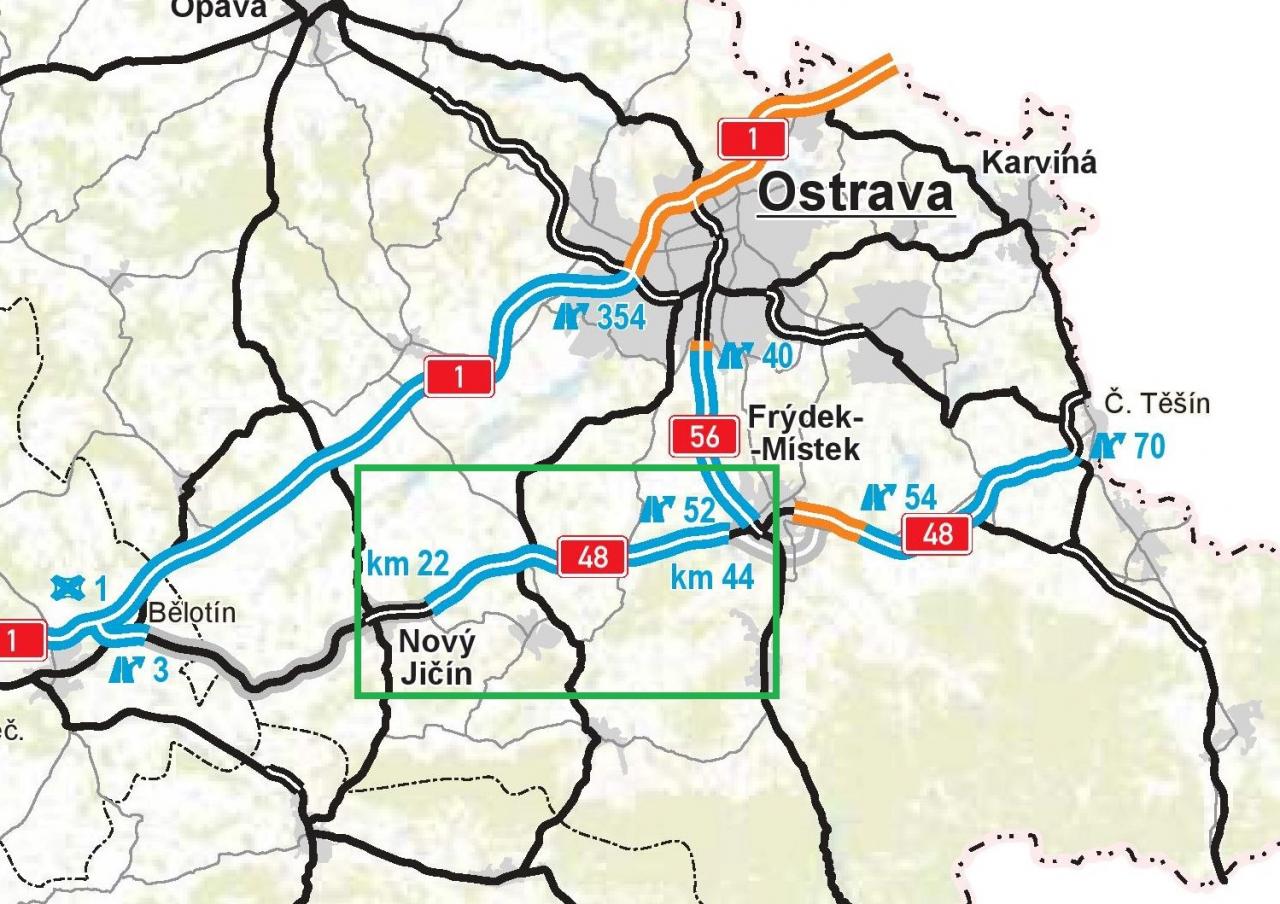 Na konci loňského roku byla zprovozněna stavba „Rybí–MÚK Rychaltice“, tím pádem došlo k otevření moderního úseku z Rybí do Frýdku-Místku a zpět. Bývalá komunikace I. třídy se stala čtyřproudovou směrově rozdělenou dálnicí. Rozšíření původní vozovky zhruba o 10 metrů umožnilo vytvořit střední dělící pás lemovaný jízdními pruhy šířky 3,75 metru.
