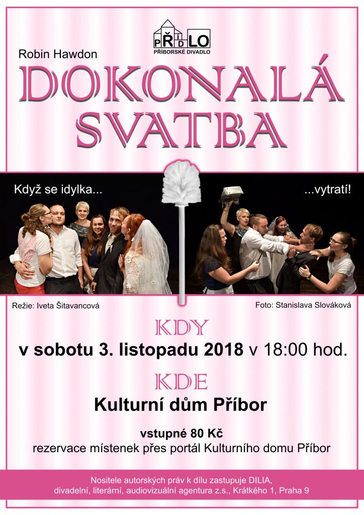 Ráno před svatbou se Bill probudí v posteli po noci, kterou si nepamatuje, s dívkou, kterou nezná, a navíc si ani nepamatuje, co se mezi nimi dělo? A dívka říká, že leccos. Nezbývá než ji okamžitě ukrýt do koupelny a za vydatné pomoci svědka Toma a nebohé, do věci omylem zapletené pokojské Julie, se pokusit vše utajit před nevěstou a její matkou. Vše se navíc definitivně zaplete ve chvíli, kdy Tom zjistí, která to dívka s Billem strávila noc. Vše v této komedii záměn, lží a nedorozumění spěje k nevyhnutelné katastrofě, která se nakonec ukáže paradoxně být tím nejšťastnějším řešením. Rezervace místenek přes portál Kulturního domu Příbor. Změna programu vyhrazena.