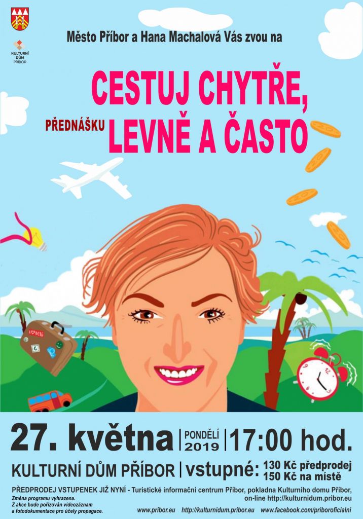 Hana Machalová boří mýty o tom, že cestování je drahé, časově náročné a nebezpečné. Vede populární přednášky zaměřené na levné cestování lidí s běžným zaměstnáním a příjmem. Dodává kuráž všem, kterým brání různé životní překážky v plnění jejich cestovatelských snů. Inspiruje svými cestami tisíce sledujících. Přesvědčí vás, že svět je tu pro všechny bez rozdílu. Bude Vám optimistickým rádcem a ohromnou motivací své cesty už dál neodkládat a vyrazit. Vstupné v předprodeji 130 Kč, na místě 150 Kč.