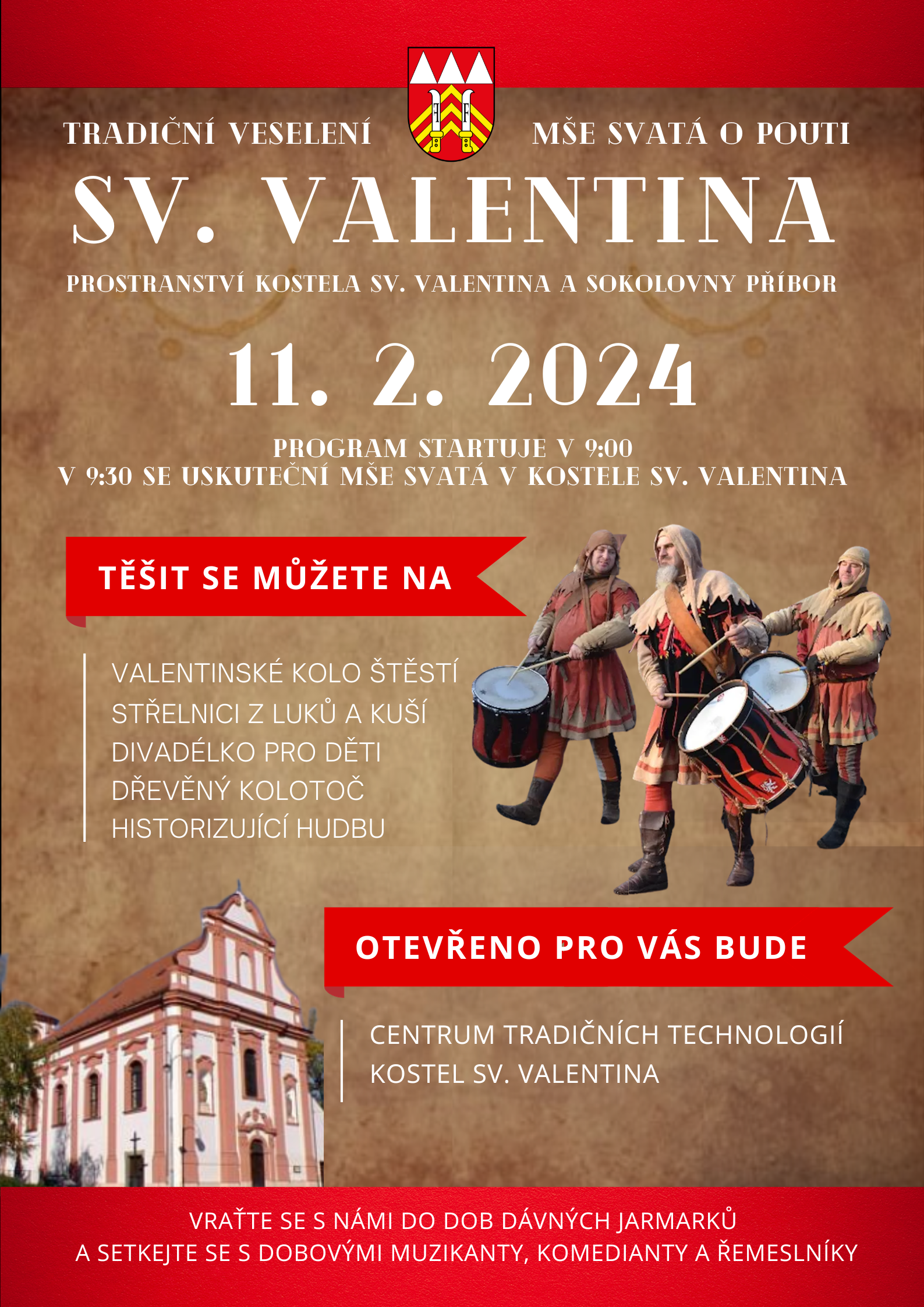 Město Příbor Vás srdečně zve na tradiční Valentinskou pouť, která se bude konat dne 11. 2. 2024, za restaurací Sokolovna.