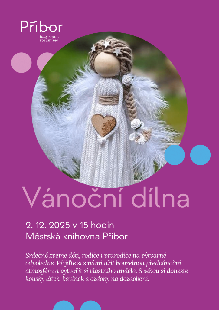 Přijďte si s námi užít kouzelnou předvánoční atmosféru a vytvořit si vlastního anděla. S sebou si doneste kousky látek, bavlnek a ozdoby na dozdobení.