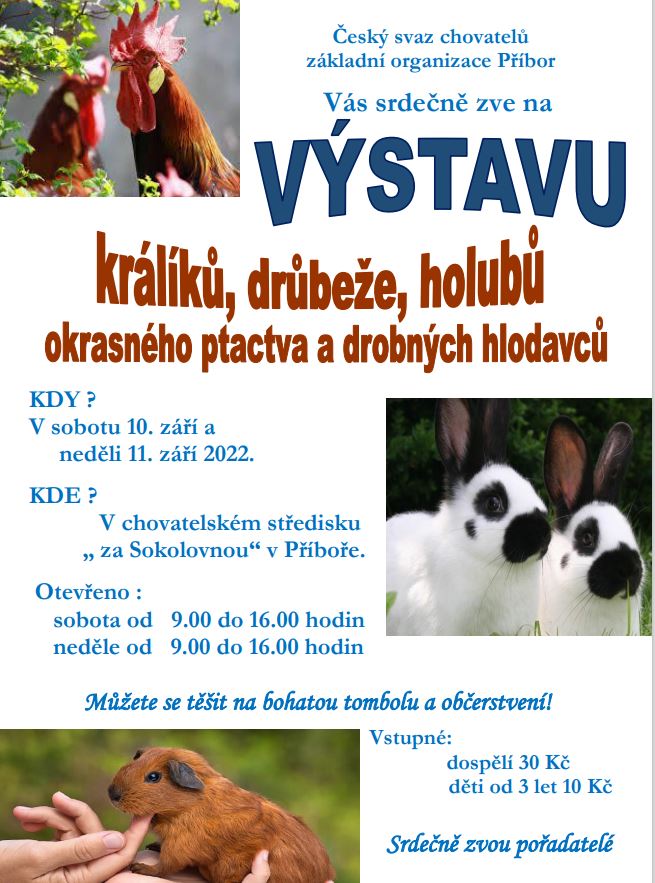 Výstava králíků, drůbeže, holubů, okrasného ptactva a drobných hlodavců